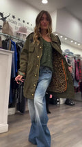 Fashion casual embroidered jacket withleopard print lining